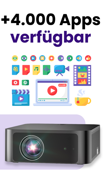 Definitiv! Der F1 läuft auf Android 9.0 und ermöglicht es dir, Netflix sowie andere Streaming-Dienstedirekt aus dem Google Play Store herunterzuladen. Externe Streaming-Geräte wie Fire-TV oder Chromecast sind nicht erforderlich. Sobald du den Projektor mit dem WLAN verbunden hast und dich in deinem Netflix-Konto angemeldet hast, kannst du deine Lieblingsserien und -filme bequem auf der großen Leinwand genießen.